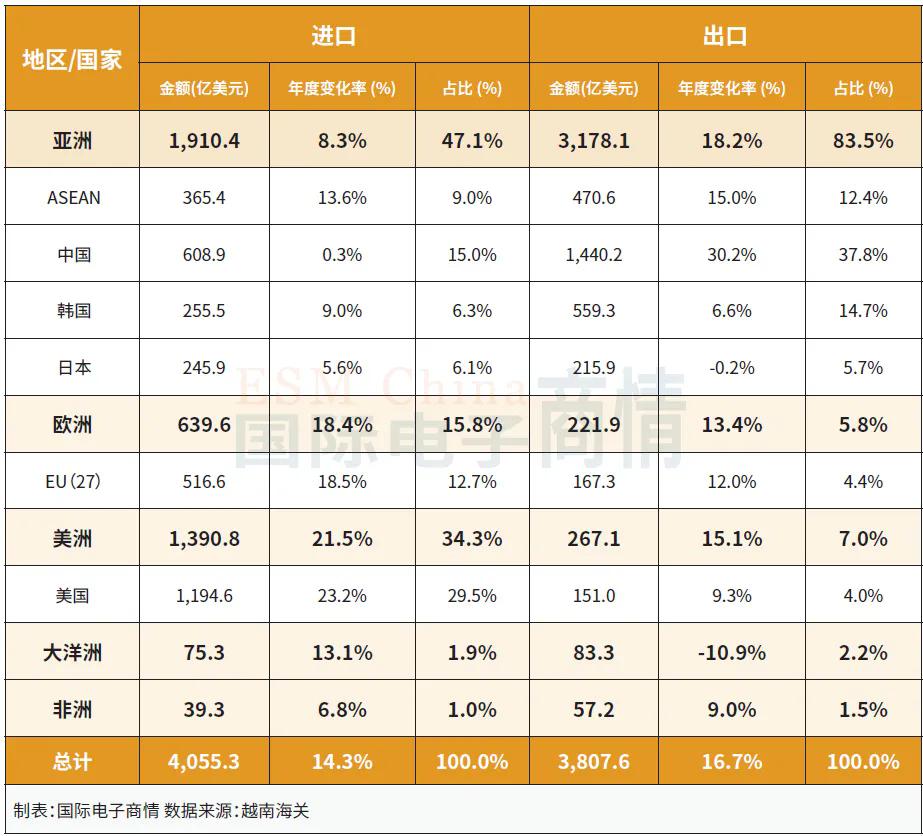 据越南海关统计,2024年,该国计算机、电子产品及零部件出口额达725.8亿美元,同比增长26.6%;手机及零部件出口额为538.9亿美元,增长2.9%,两类产品分列出口商品前两位。同期,相关产品进口额达1070.5亿美元,增长21.7%,显示出产业对外部供应链的高度依赖。