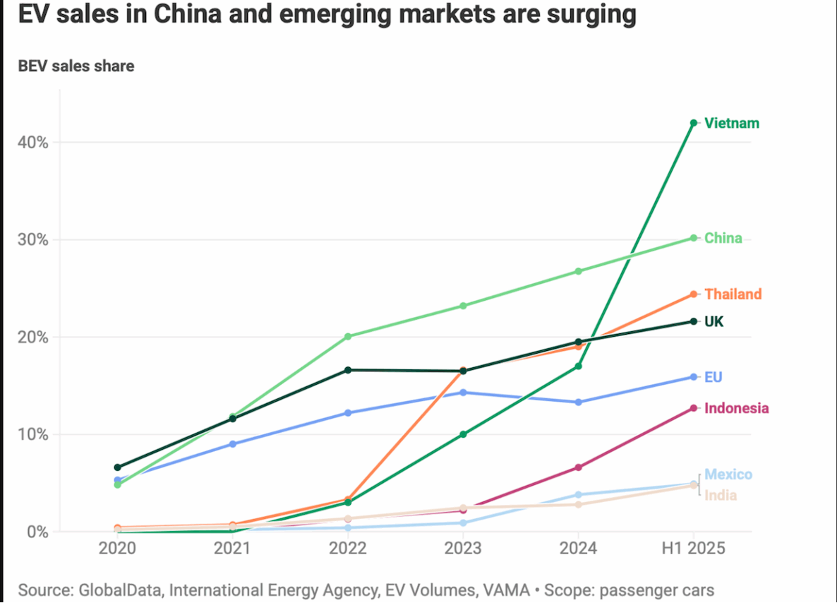 越南本土电动汽车制造商VinFast正积极推进国产化进程,计划到2026年实现80%的国产化率,并在2027年达到50万辆年产量,2030年进一步提升至100万辆。这一产能扩张计划将显著降低零部件成本,推动电动汽车价格进一步亲民化。