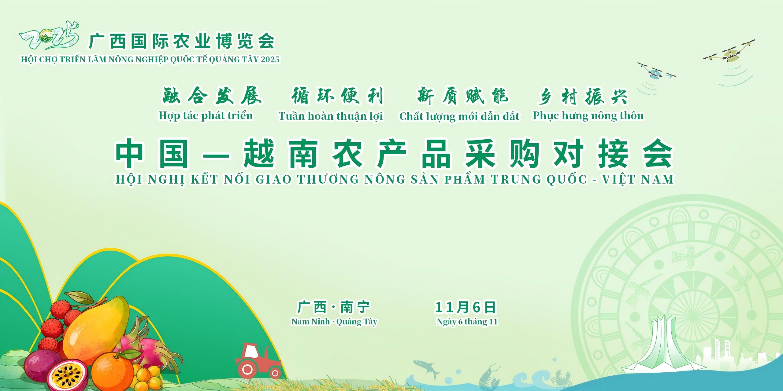 作为本届博览会的重要配套活动,中国—越南农产品采购对接会定于2025年11月6日14:30-16:30在南宁国际会展中心D105会议室举行。