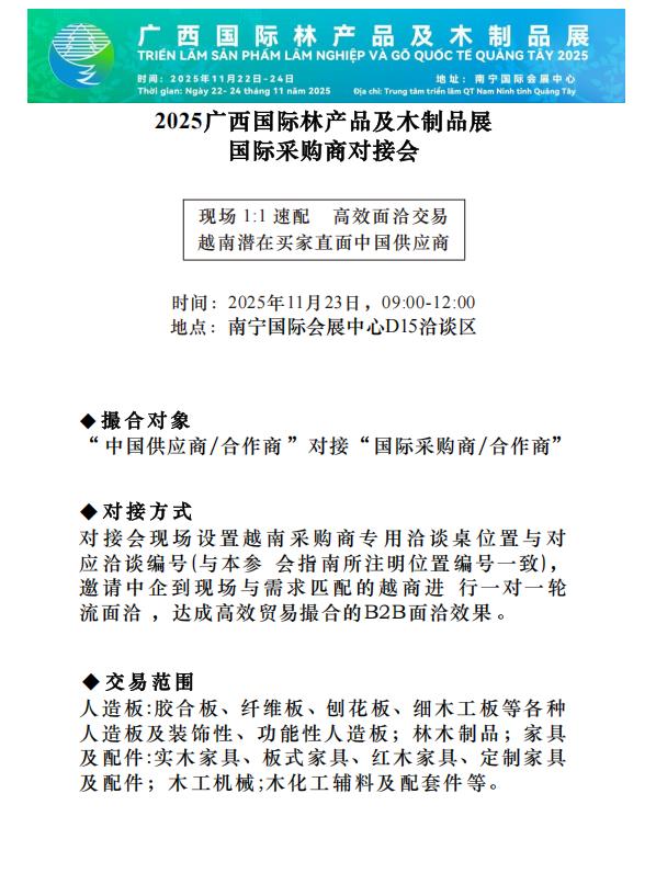 2025广西林木展国际采购商对接会,开启高效B2B洽谈!