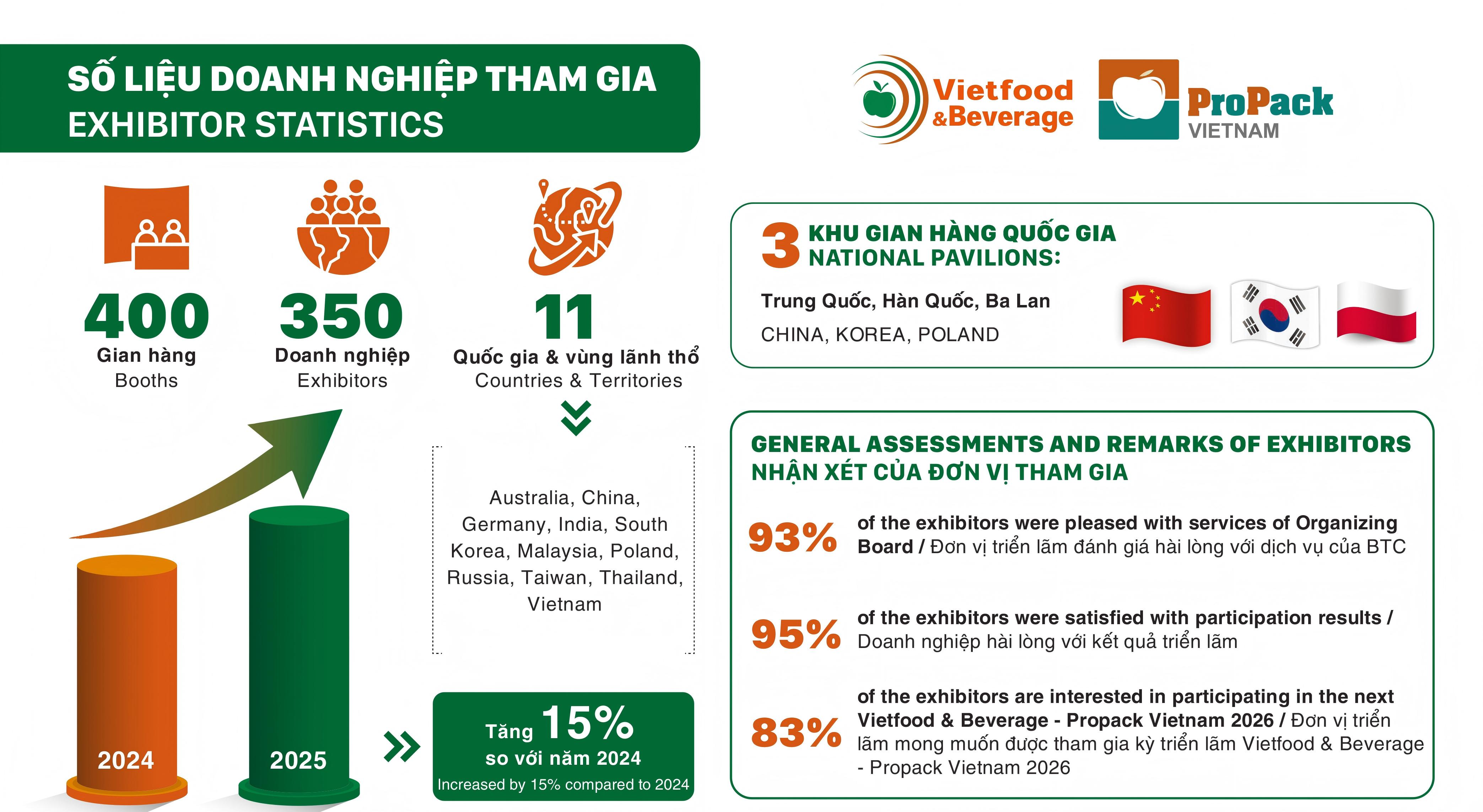 2025年11月展会档期共设有400个展位,350多家展商,来自中国、德国、波兰、韩国、越南、中国台湾、泰国等11个国家和地区。吸引全球29个国际和地区的观众数量超1.7万人次,越南作为农业大国,以进出口食品贸易为主要经济来源,翘首以盼全球合作。