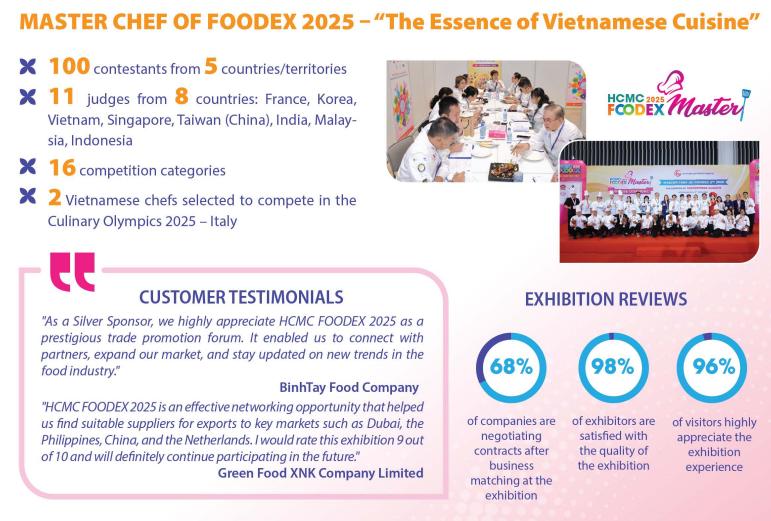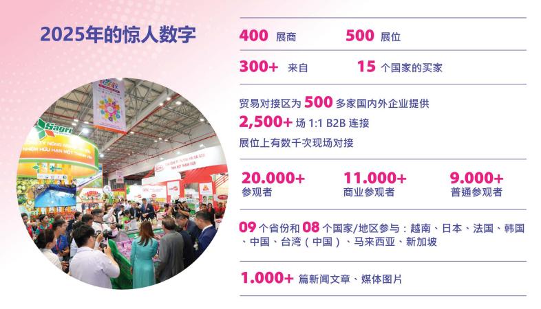 HCMC FOODEX 是一个服务于越南乃至东南亚地区食品业的综合展贸活动,是商业领袖、组织、专家、经销商和公众之间多渠道联系信息的场所,以“天然-绿色-可持续产品”为主题,将激励并创造绿色生产、健康食品、可持续发展和全球化贸易提升,吸引众多领先品牌参与活动。