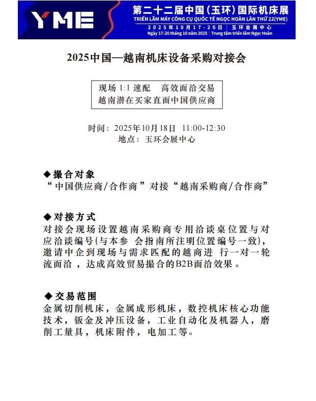 活动主题:2025中国-越南机床设备采购对接会